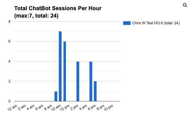 Bar chart showing the total chatbot sessions occurring per hour over the selected time period.