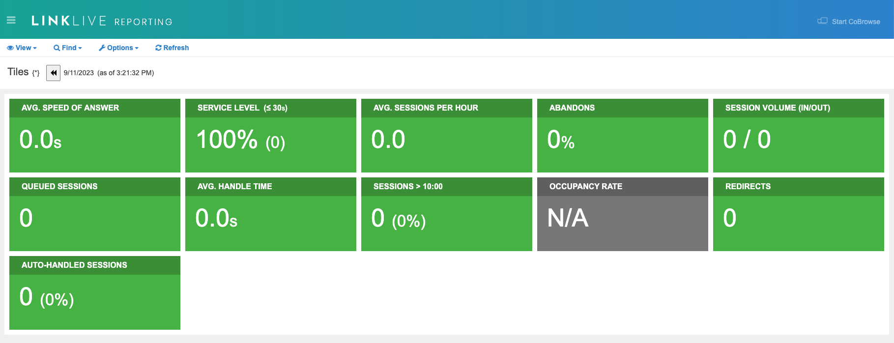 View the Tiles for your contact center by selecting Tiles from the View drop down menu at the top of the page.