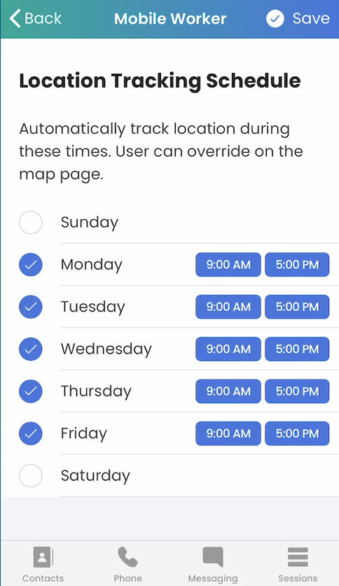 Allows for scheduling On/Off tracking so that users don’t have to manually change it daily.