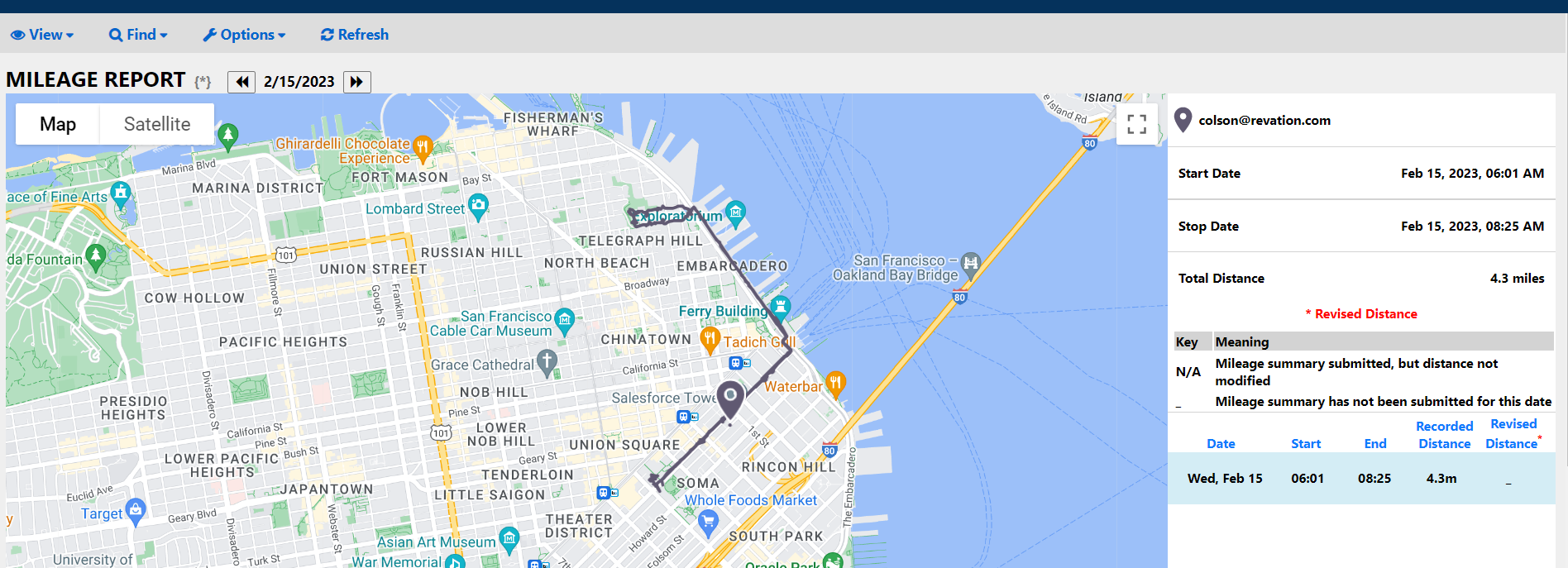 History of user routes and mileage