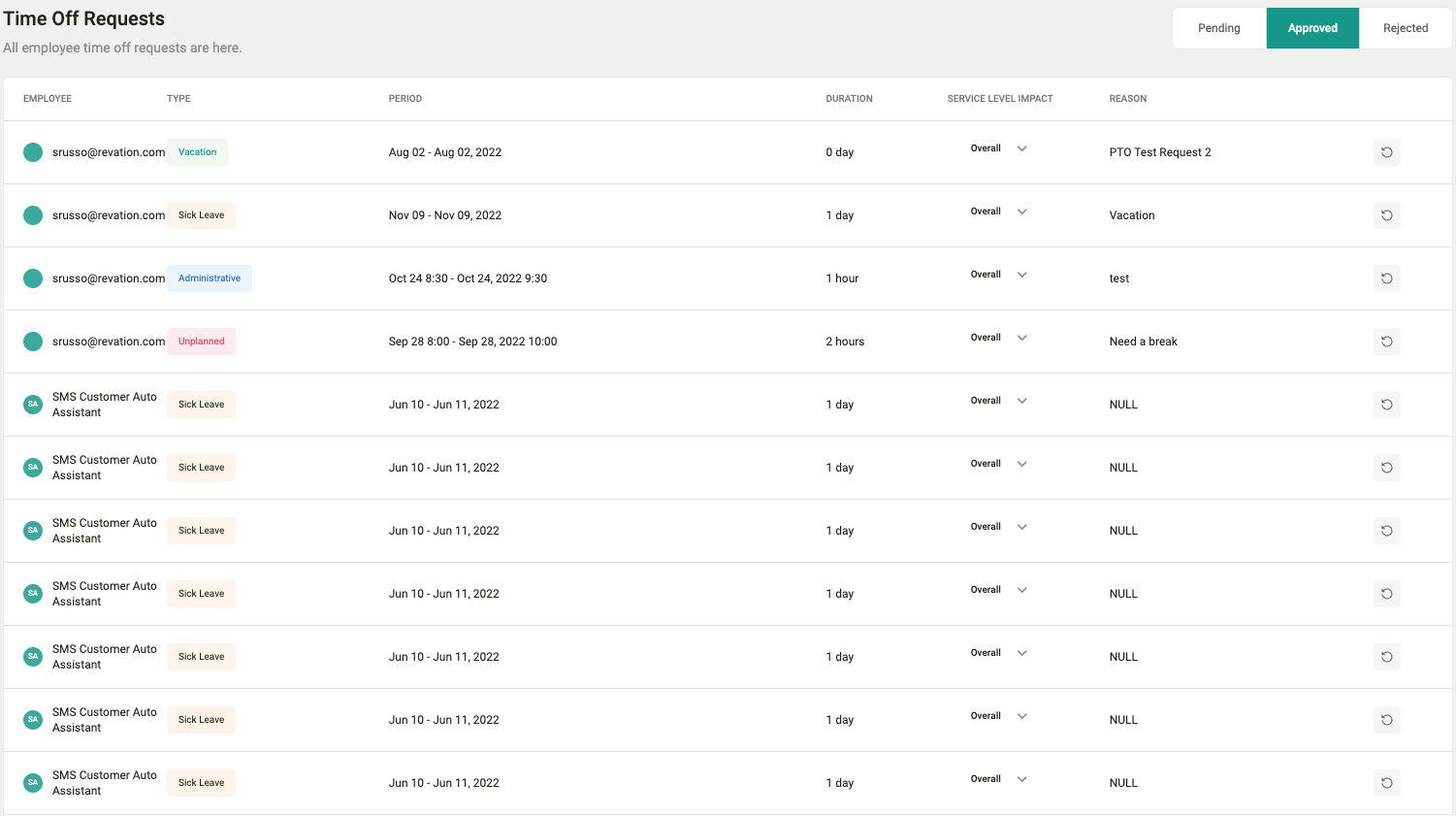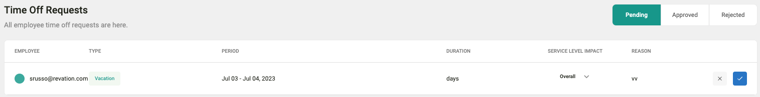Approve or deny the agent request. Approval will update the schedule with the new SLA expectations and remove the agent from the schedule. Deny will remove the request and will not have an impact on SLA.