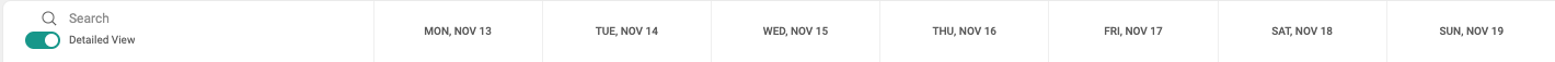The Detailed View toggle is used to provide additional details on the scheduling of queues by breaking the grouping down further into specific hunt group scheduling. Toggling this option off will display all schedules at a higher queue level. Enabling this toggle will break down the queue into specific hunt groups.