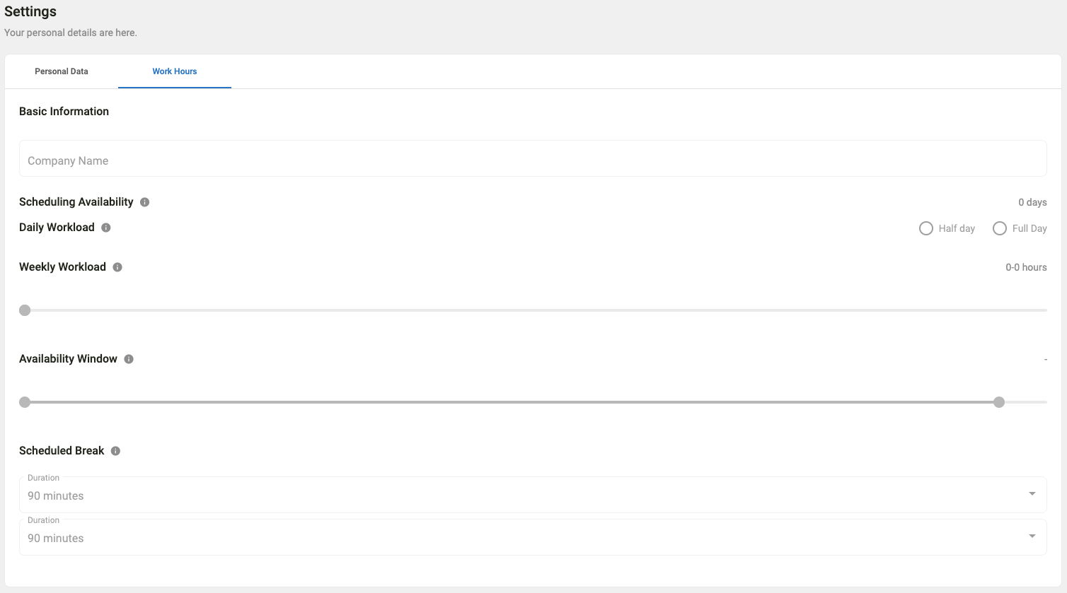 Settings are used to define your experience within Workforce Management and how scheduling should be created. All configuration related to work hours are set by your supervisor.